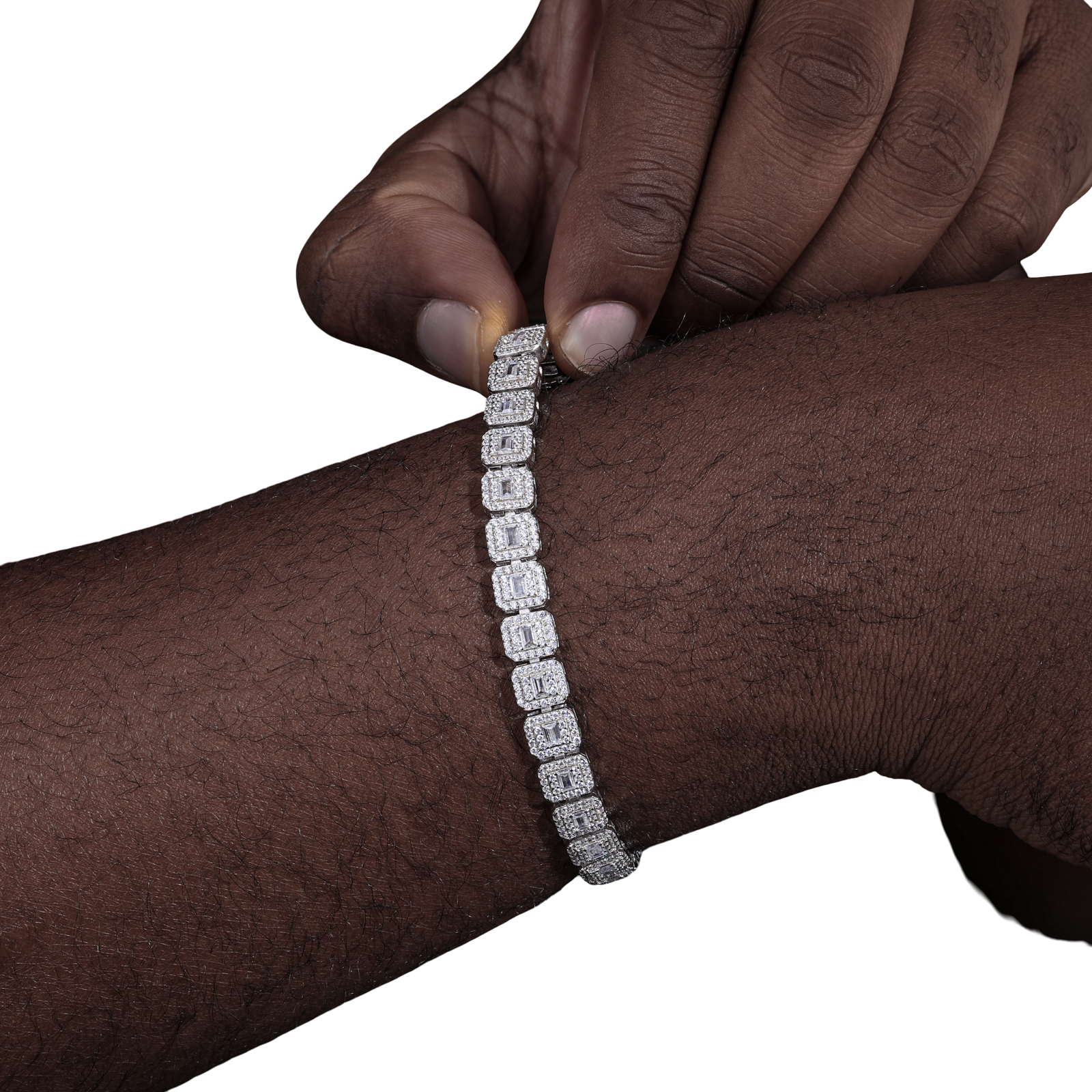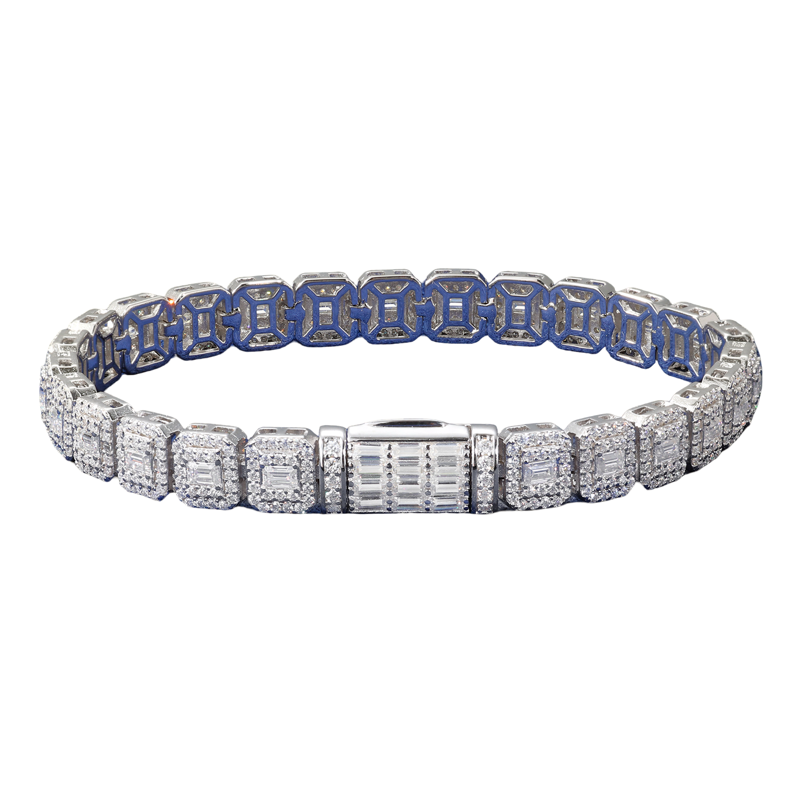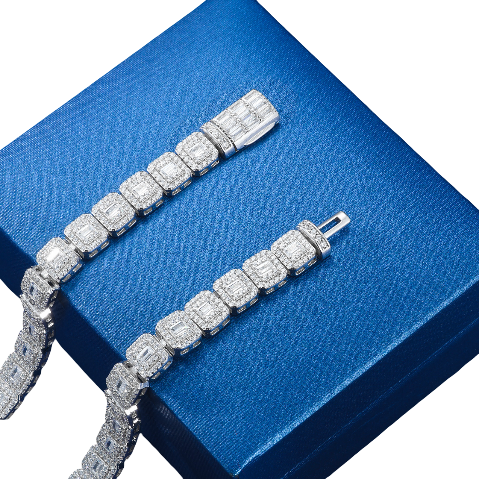 Bold. Refined. Iced to perfection. The Baguette Tennis Bracelet features a stunning pattern of VVS flawless moissanite baguette and round-cut stones that pass all diamond testers. Crafted from 925 sterling silver and finished with five layers of rhodium plating, it offers a structured, architectural look with unmatched brilliance. A must-have for those who want their wristwear to make a powerful statement.