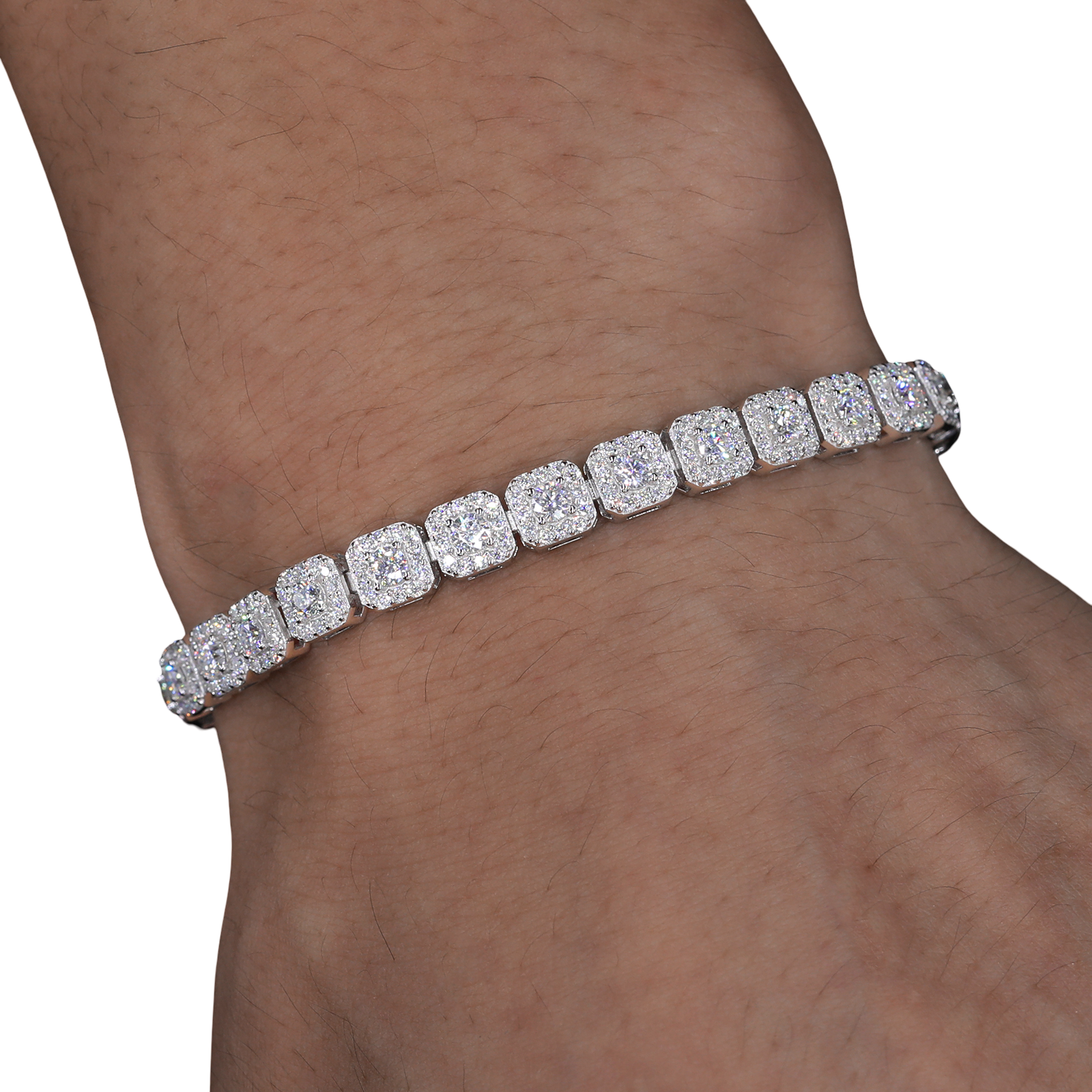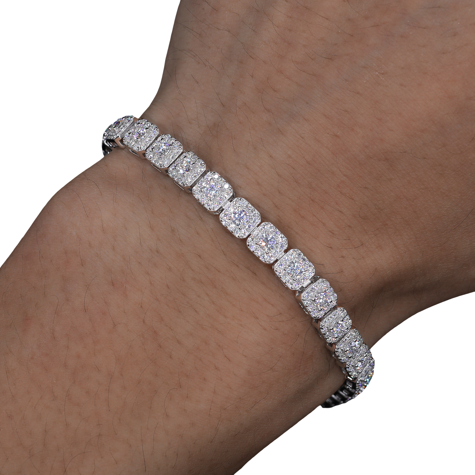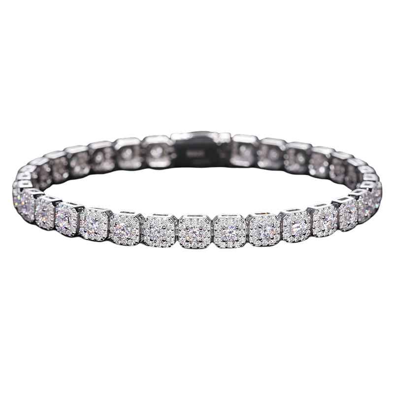 Elevate your wrist game with this Custom Square-Cut Tennis Bracelet, featuring bold, square-set links fully encrusted with VVS flawless moissanite stones that pass all diamond testers. Crafted from 925 sterling silver and finished with five layers of rhodium plating, it offers high-end brilliance and durability. A standout piece that blends precision, symmetry, and luxury for those who appreciate next-level detail.