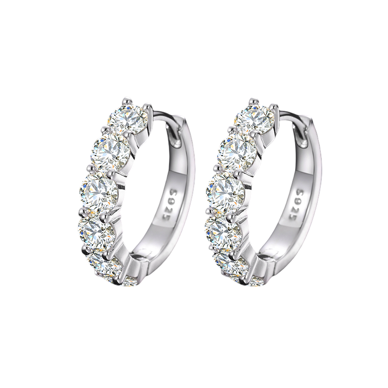 Sophisticated shine for every occasion. The Half Iced Earrings feature a sleek hoop design, half-set with round-cut VVS flawless moissanite stones that pass all diamond testers, ensuring brilliance from every angle. Crafted from 925 sterling silver and plated five times in rhodium, they combine everyday wearability with high-end luxury. A refined essential for timeless elegance.