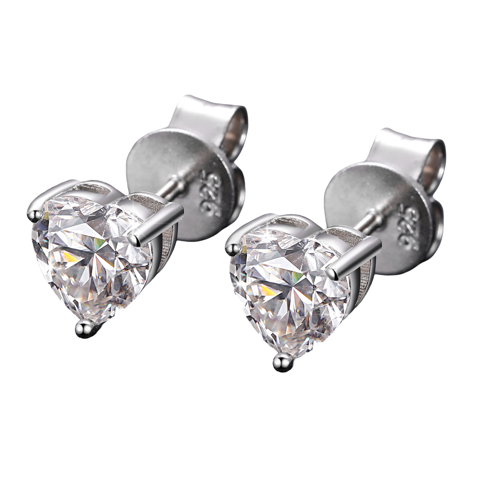 Romance meets brilliance. The Hearts Earrings feature heart-shaped VVS flawless moissanite stones that pass all diamond testers, secured in a refined prong setting. Crafted from 925 sterling silver and plated five times in rhodium, these studs deliver timeless sparkle with a touch of love. Perfect for everyday wear or as a meaningful gift.